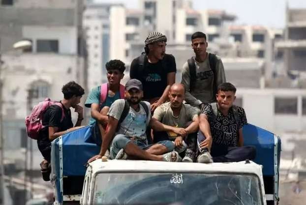 Um grande número de palestinos continua a fugir da Cidade de Gaza depois que o Exército de Israel...