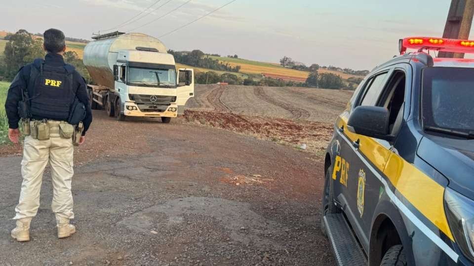 Caminhão carregado com aproximadamente 250 mil maços de cigarros contrabandeados de origem estran...