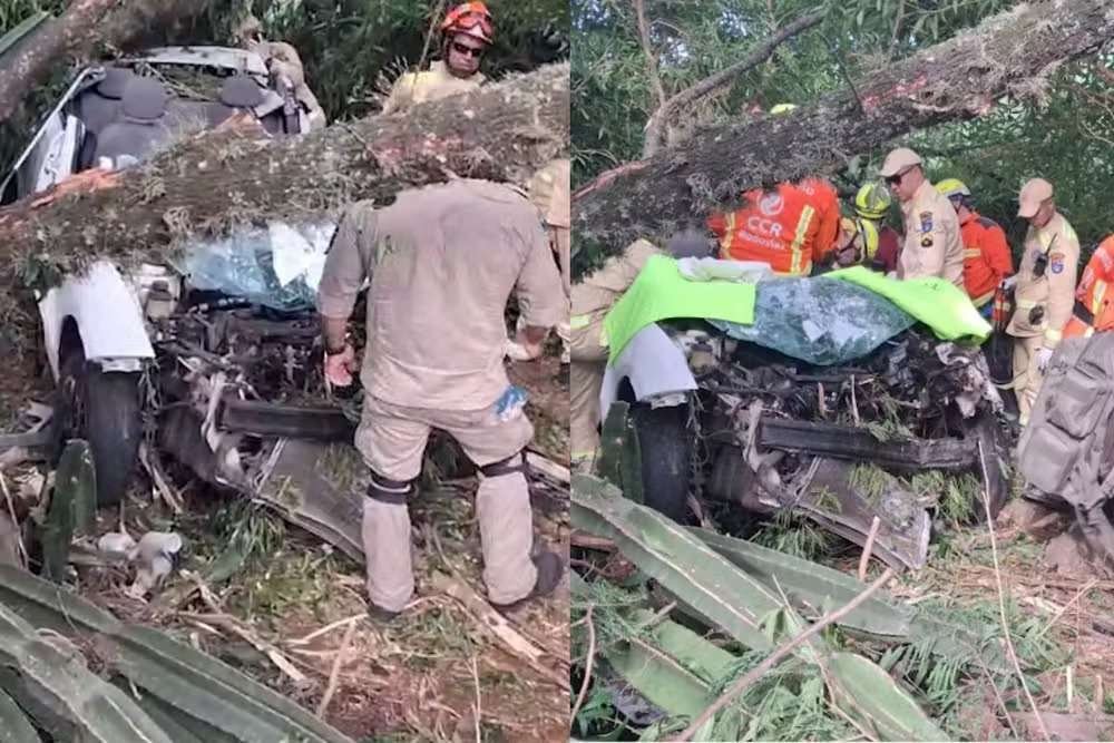 Segundo o subtenente do Corpo de Bombeiros, Marcos Carmo, o veículo não despencou, pois foi segurado por algumas árvores. O tronco de uma delas, inclusive, atingiu o carro, fazendo com que Luiz ficasse preso.