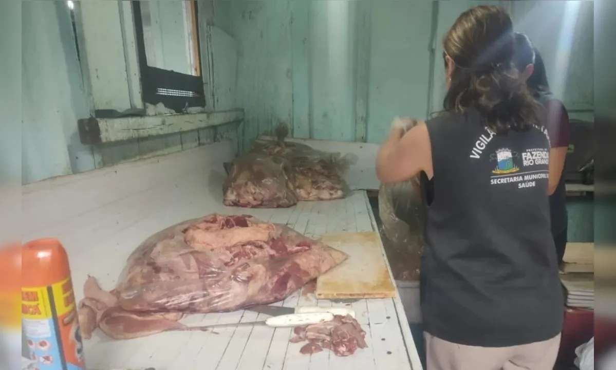 No interior do imóvel, as equipes encontraram um cenário crítico de risco à saúde pública. Havia freezers desligados contendo grandes quantidades de carne estragada, além de caixas com produtos espalhados pelo chão. O ambiente apresentava intensa presença de moscas e odor fétido.