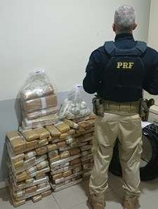 A PRF (Polícia Rodoviária Federal) apreendeu, no sábado (31), quase 130 quilos de drogas durante abordagem na BR-369, em Londrina. A ação resultou na prisão de uma mulher de 34 anos, que levava os filhos no veículo.