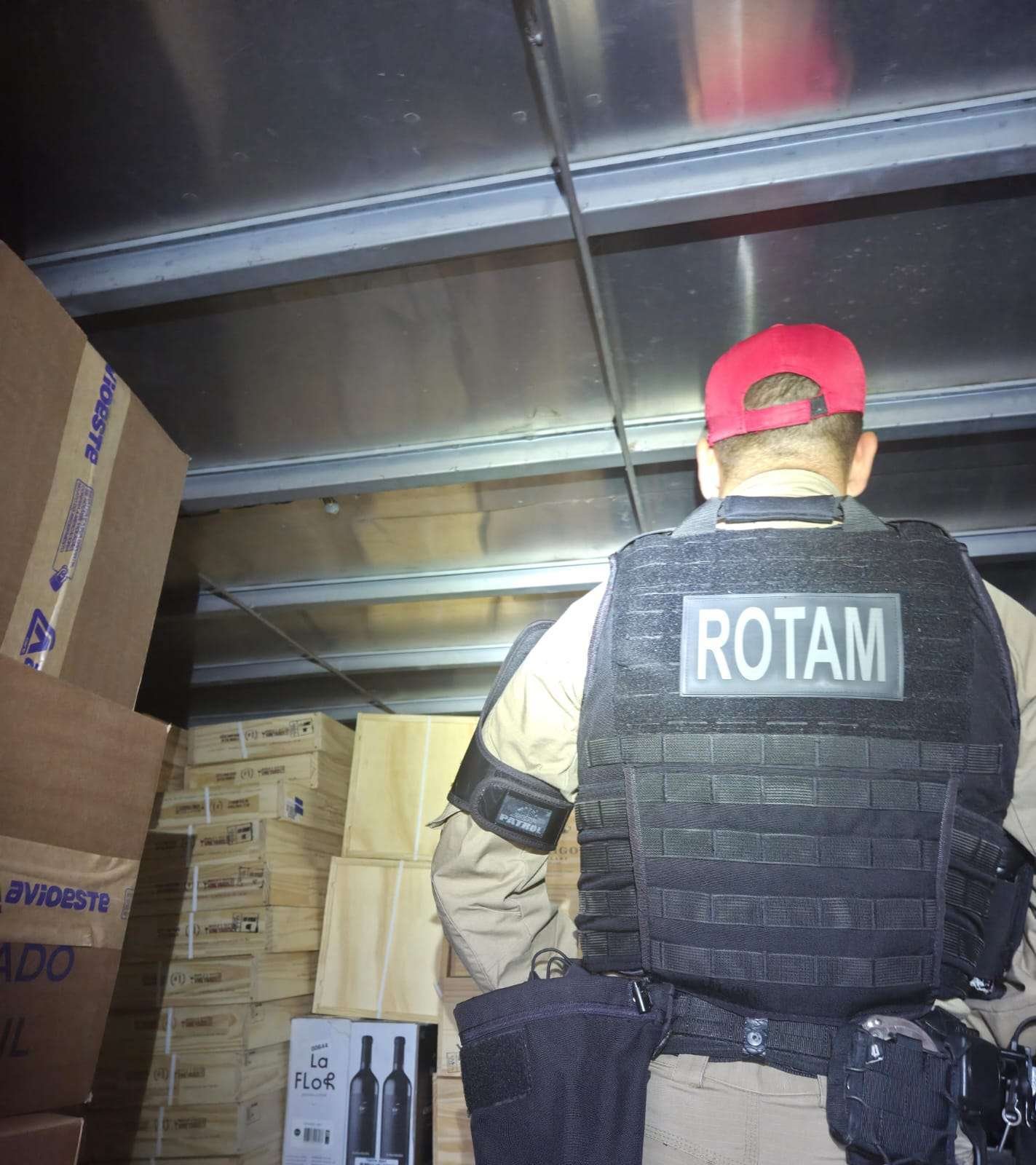O caminhão, com placas do Mato Grosso do Sul, aparentava transportar equipamentos destinados a aviários. Durante a vistoria no compartimento de carga, os policiais encontraram aproximadamente mil caixas de vinho e 30 garrafas de azeite de origem estrangeira, sem o devido desembaraço aduaneiro.