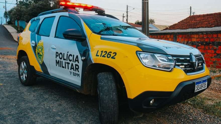 Ao chegar ao local, a equipe policial localizou o autor dentro do imóvel. O indivíduo resistiu à abordagem, sendo necessário o uso de força física moderada para contê-lo, em conformidade com os princípios legais e doutrinários do uso diferenciado da força adotados pela Polícia Militar do Paraná. Após ser contido, o autor foi algemado.