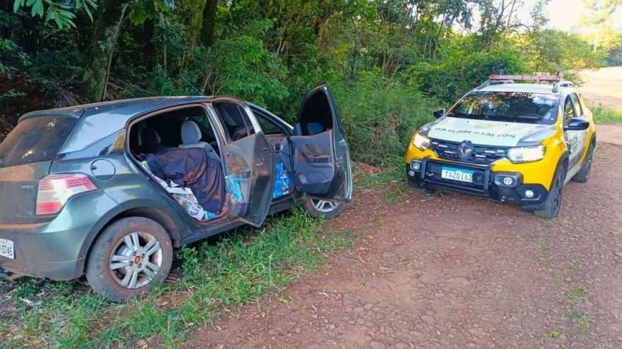 Conforme o boletim policial, a equipe foi acionada após informações repassadas pelo BPMOA sobre um veículo GM Agile de cor verde que estaria transportando produtos ilícitos. Durante patrulhamento nas proximidades da comunidade Santa Luzia, os policiais localizaram o carro escondido próximo a um matagal na Linha Capela São Paulo.