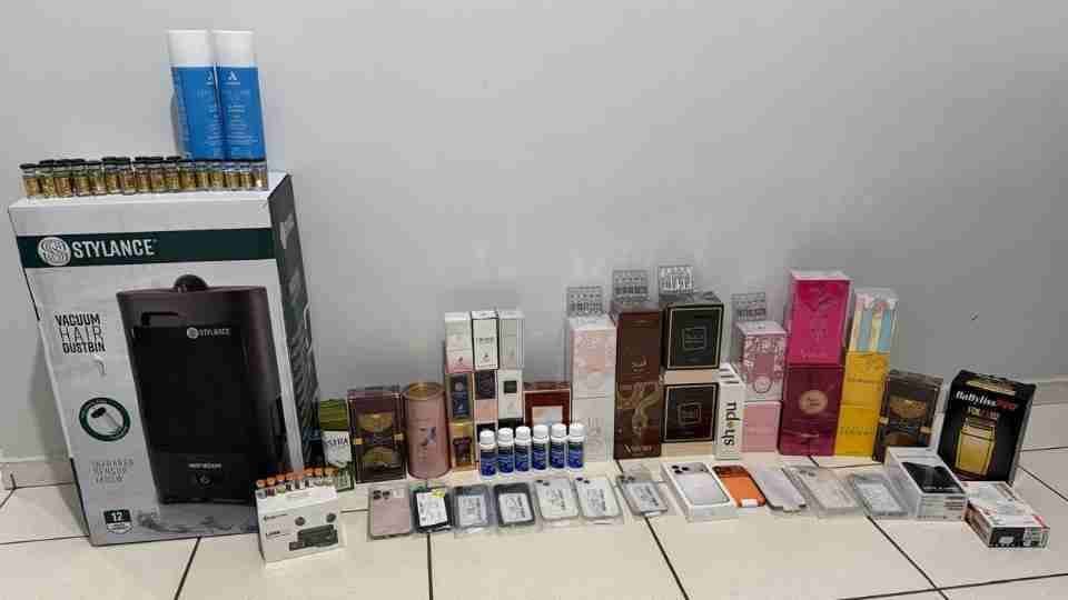 Entre os itens apreendidos estão 45 unidades de anabolizantes, oito de tizerpatida, 13 celulares, além de eletrônicos e 28 perfumes importados.