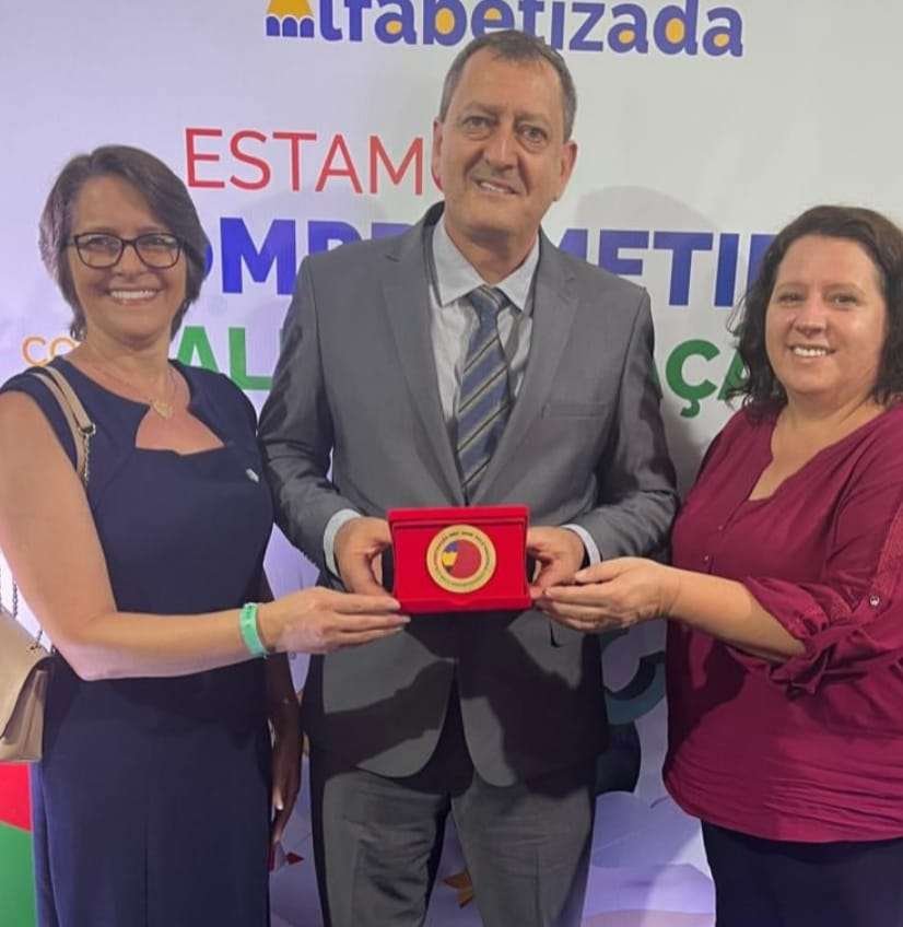O prefeito Jander Loss, a diretora do Departamento de Educação e Cultura, Helena Heckler e a Articuladora Municipal, Edineia Battisti Junges, estiveram em Brasília e receberam, na última segunda-feira, 23/03, durante uma solenidade do Ministério da Educação, o Selo Ouro de Compromisso com a Alfabetização. Esta é uma conquista que evidencia os resultados das avaliações externas realizadas durante o ano de 2025 pelos alunos dos segundos anos do Ensino Fundamental da rede municipal de ensino, que alcançaram o I.C.A. (Índice Criança Alfabetizada).