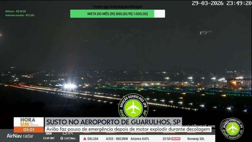O motor de um avião explodiu logo após a decolagem no Aeroporto Internacional de Guarulhos, na Grande SP, na noite do último domingo (29). O piloto precisou fazer um pouso de emergência e ninguém ficou ferido.