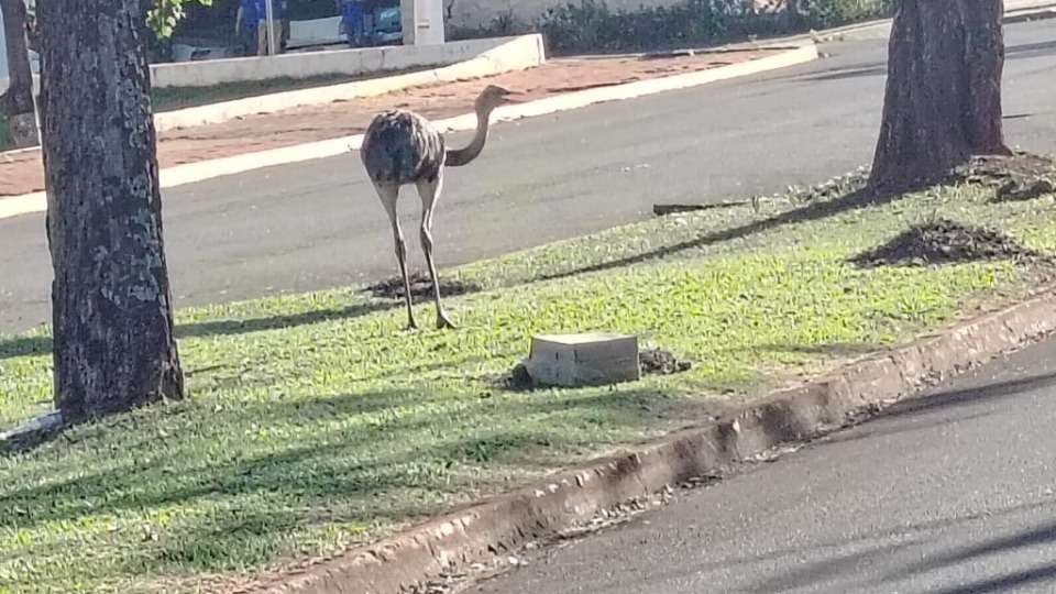 Uma ema foi vista correndo pelas ruas da cidade de Assis Chateaubriand, no Oeste do Paraná, que f...