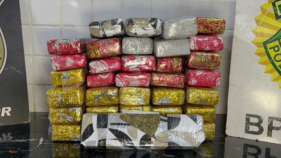A Polícia Rodoviária Federal apreendeu, nesta sexta-feira (12), 35 tabletes de maconha durante fi...