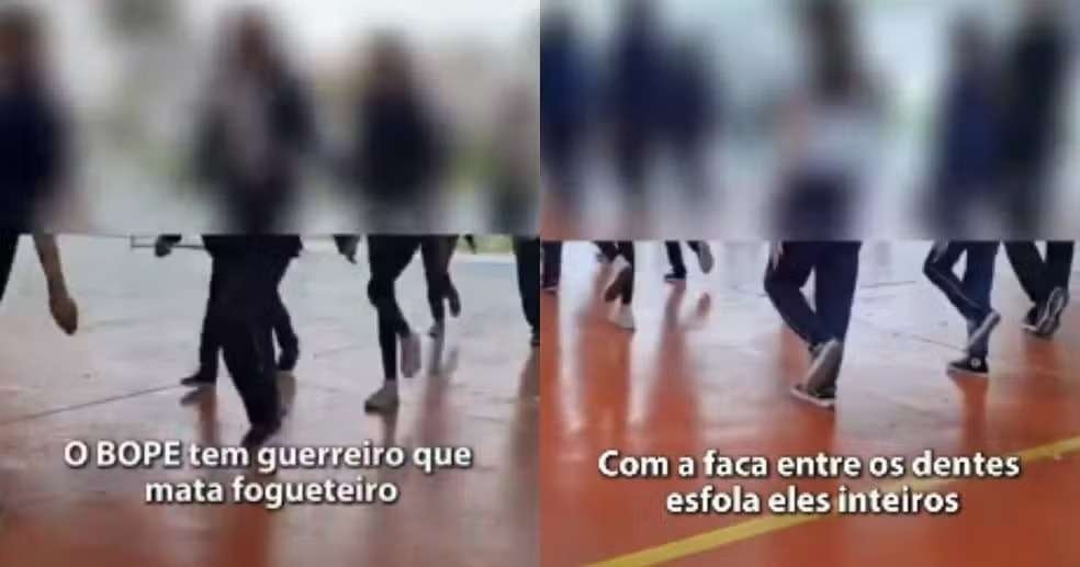 Um vídeo que circula nas redes sociais mostra estudantes marchando e cantando uma música com apol...
