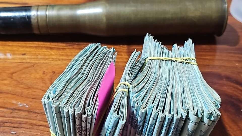 Cinco carros com placas brasileiras foram abordados por servidores da Receita Federal, na madruga...