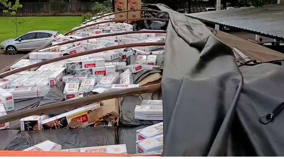 Carga de cigarros contrabandeados foi apreendida na madrugada deste sábado (25), por volta das 5h...