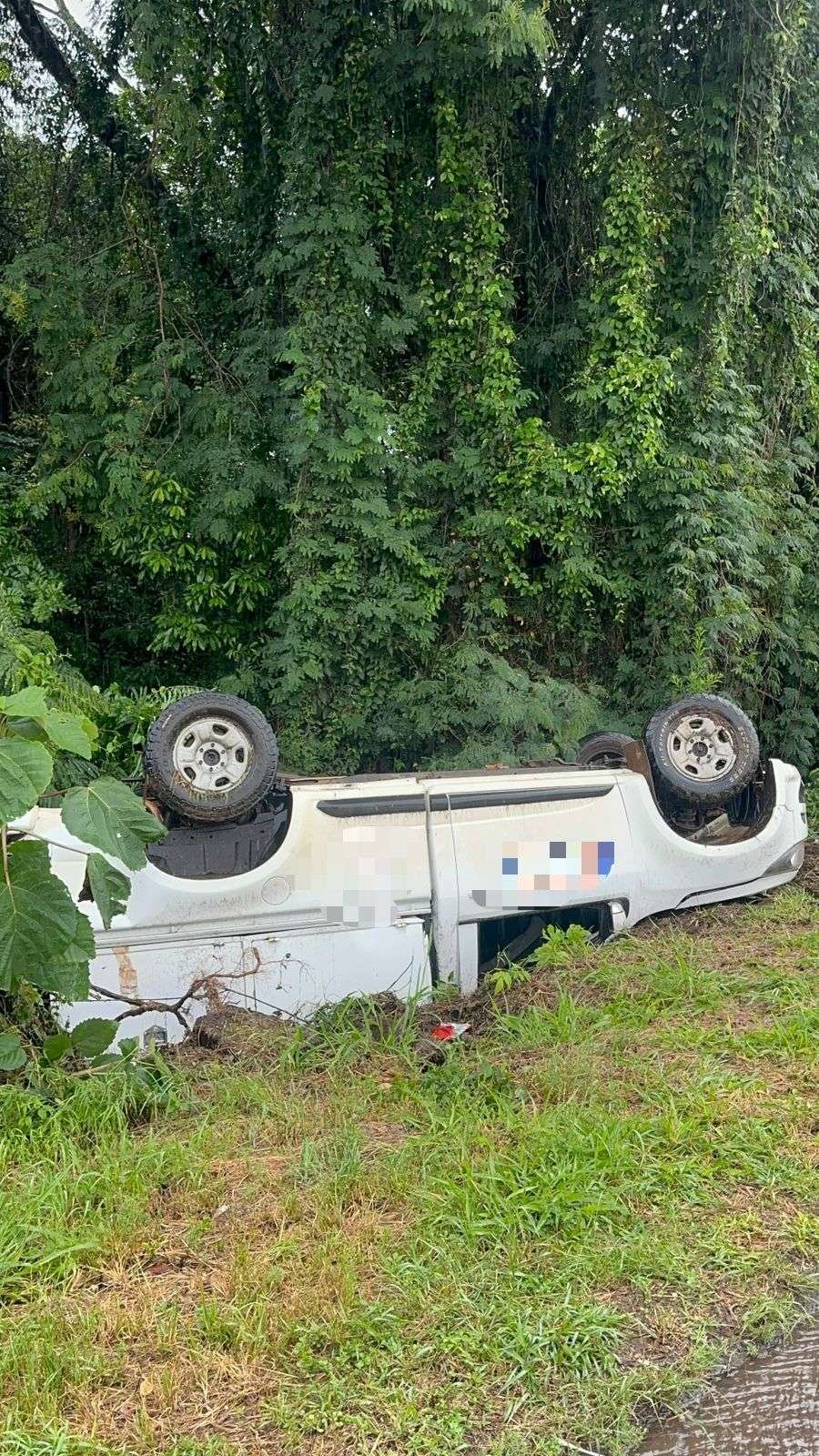 Veículo capota após terreno ceder durante manobra na PR-180, em Marmeleiro