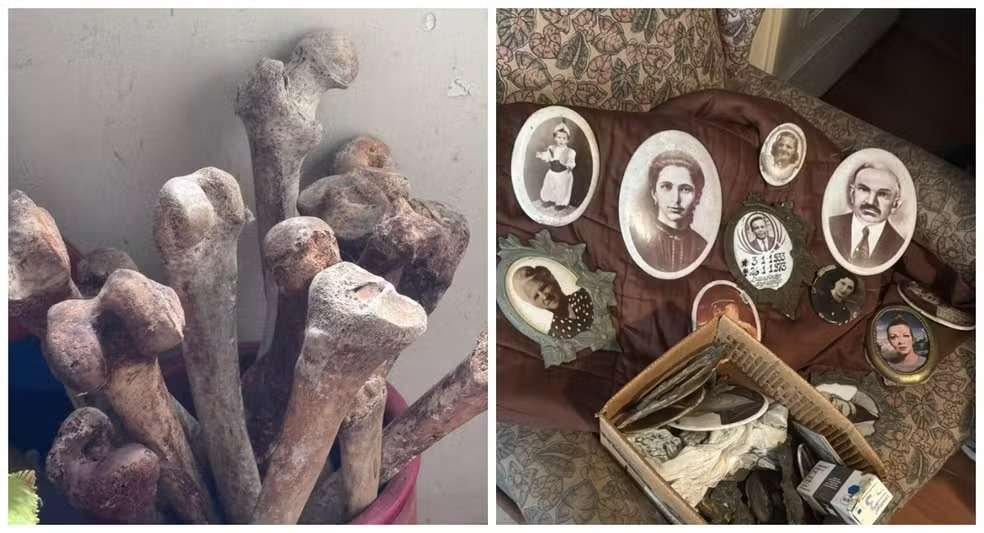 Segundo a polícia, a suspeita é de que os restos mortais tenham sido furtados de cemitérios da capital. No local, os agentes também localizaram fotografias em preto e branco e uma caixa lacrada.