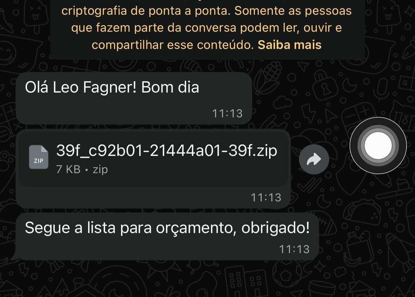 Junto com a mensagem, vem um arquivo anexado. Quando a vítima baixa e abre o documento, o dispositivo é comprometido e os golpistas conseguem clonar o WhatsApp e ter acesso a dados pessoais e conversas.