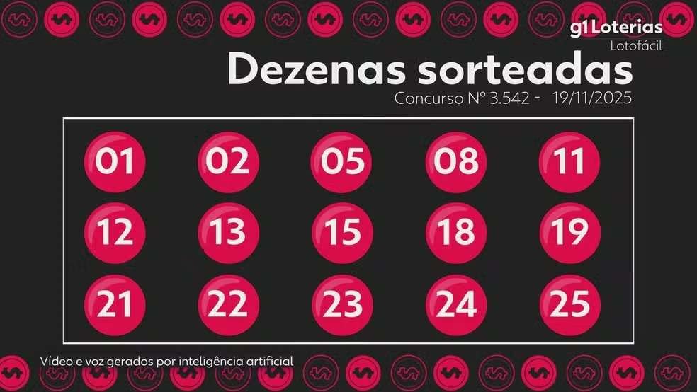 Veja abaixo os números do sorteio do concurso 3542 da Lotofácil realizado nesta quarta-feira (19):