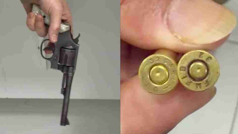 O revólver apresentou falha, os projéteis não saíram, porém as munições apresentaram as marcas das tentativas de disparos.