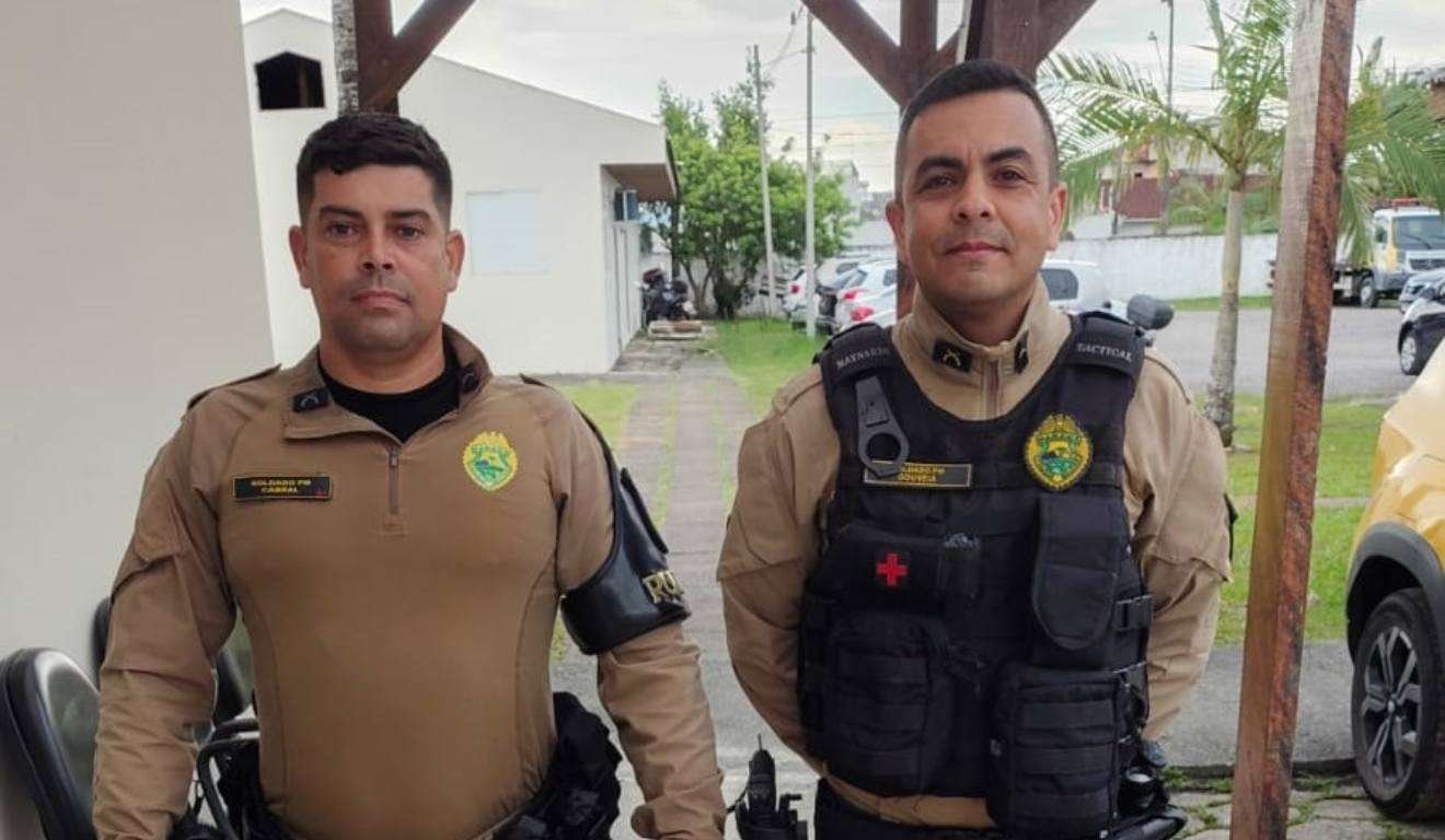 Dois agentes da Polícia Militar do Paraná (PMPR) protagonizaram um ato heroico na zona rural de Guaratuba, nesta quarta-feira (14). Enquanto realizavam patrulhamento na localidade de Pedra Branca, os soldados Cabral e Gouveia, identificaram uma família em risco, durante uma ‘cabeça d’água’ no Rio São João. Pai, mãe e filho, lutavam para tentar sair da água, mas a correnteza impedia os turistas.