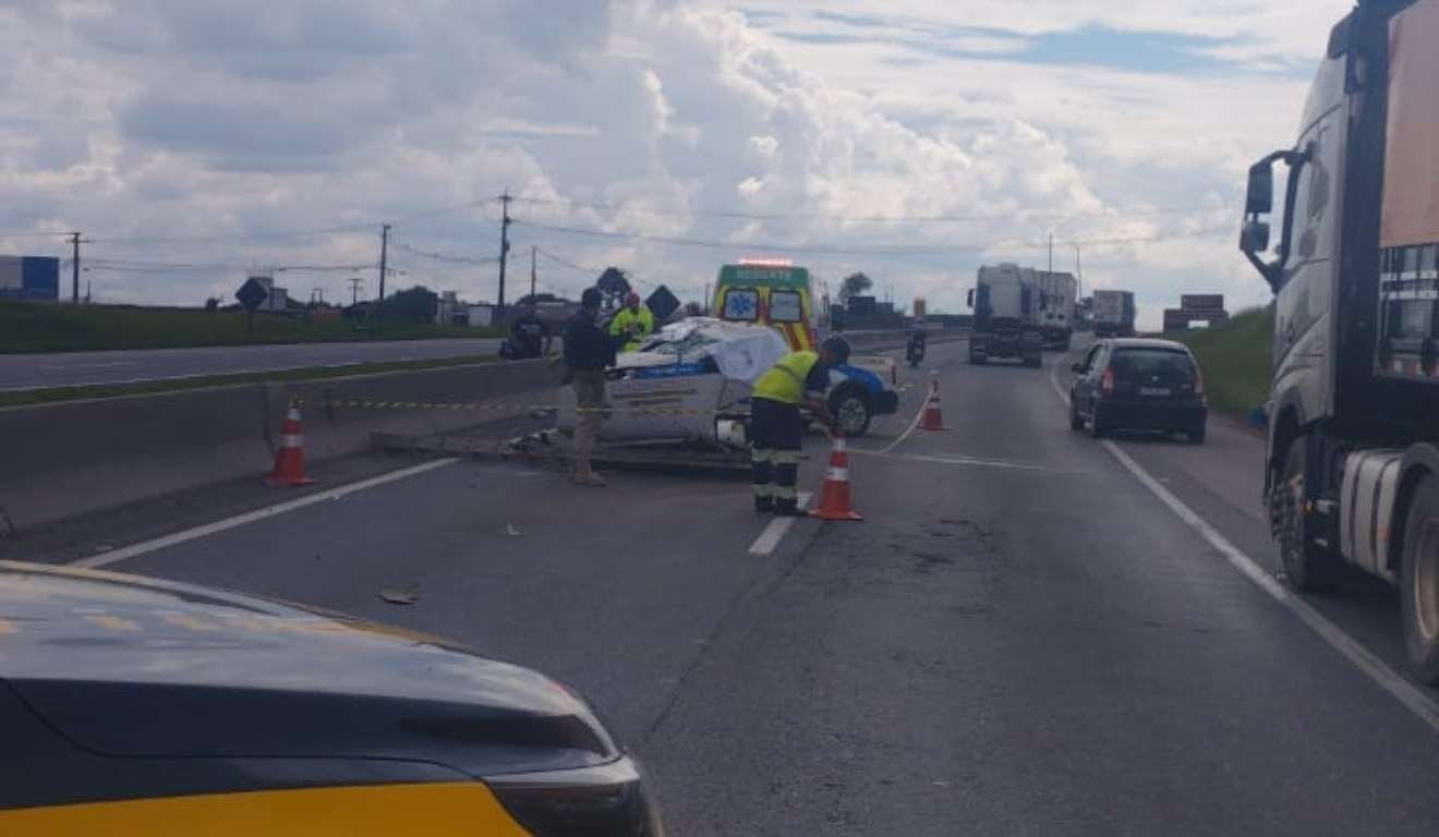 Equipes da Polícia Rodoviária Federal (PRF) e de resgate foram acionadas e interditaram duas faixas do Contorno Leste para atendimento. A Saveiro, que pertence a uma empresa, transportava duas pessoas, sendo que o homem de 59 anos morreu no local e o outro ocupante foi resgatado e encaminhado para um hospital.