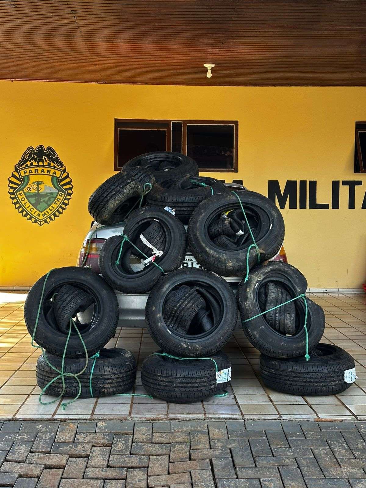 Segundo a PM, por volta das 5h30, os policiais visualizaram um veículo Renault Logan, de cor prata, que apresentava características compatíveis com a prática de crimes transfronteiriços. Diante da suspeita, foi realizada a abordagem e, durante a vistoria, foram encontrados aproximadamente 49 pneus sem a devida fiscalização aduaneira, configurando o crime de contrabando.