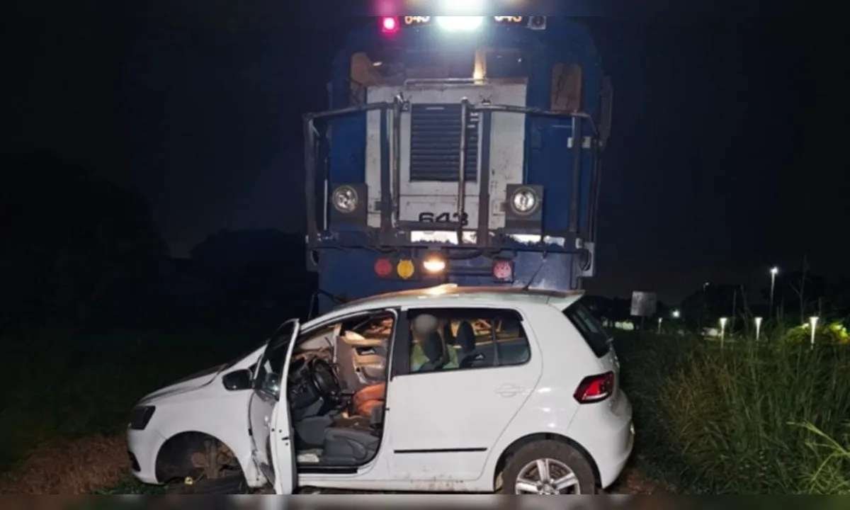 Um acidente envolvendo um carro e um trem deixou duas pessoas feridas no último sábado (31), em Sarandi, no Norte do Paraná. O veículo foi atingido na lateral e arrastado por aproximadamente 200 metros sobre os trilhos.