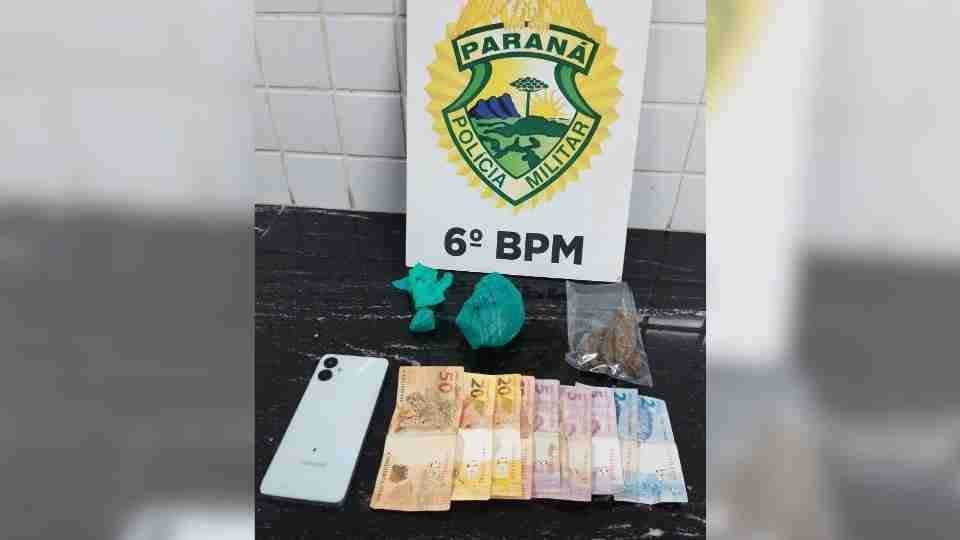 Ao todo, foram apreendidos 74 gramas de maconha e R$ 124 em dinheiro.