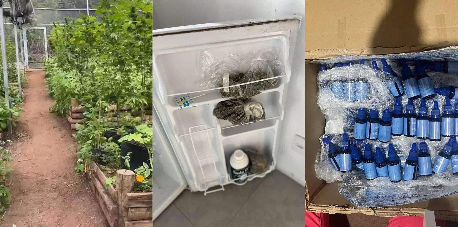 Durante a ação, foram apreendidos aproximadamente 800 pés de maconha em diferentes estágios de desenvolvimento, além de cerca de 500 frascos contendo óleo de cannabis, prontos para comercialização. O valor estimado do material apreendido ultrapassa R$ 150 mil. Dois homens foram presos em flagrante e encaminhados ao sistema prisional, onde permanecem à disposição da Justiça.
