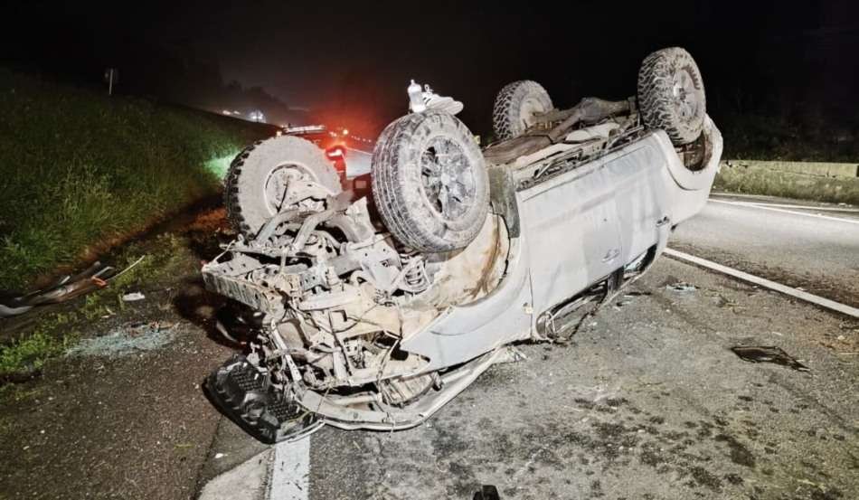 A caminhonete Toyota Hilux, onde estava a família, capotou por vários metros e os três ocupantes foram ejetados do veículo. A passageira, também de cerca de 30 anos, sofreu ferimentos graves. Ela foi entubada e encaminhada a um hospital da região em estado grave.