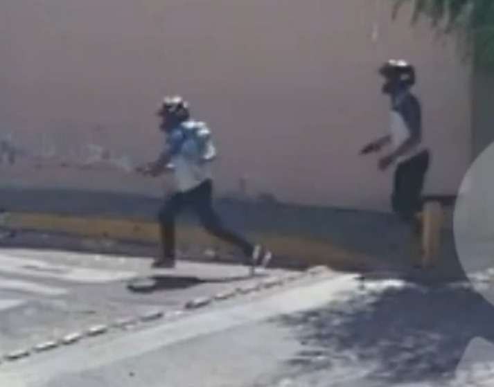Nas imagens, é possível ver que, imediatamente, um dos jovens cai após ser atingido, enquanto outros correm para longe. Os criminosos também deixam o local correndo e fogem na moto. Victor Guilherme Sousa de Aguiar e Luis Claudio Sousa Oliveira Filho, de 17 e 16 anos, respectivamente. Outros três estudantes, todos adolescentes, foram baleados e sobreviveram.
